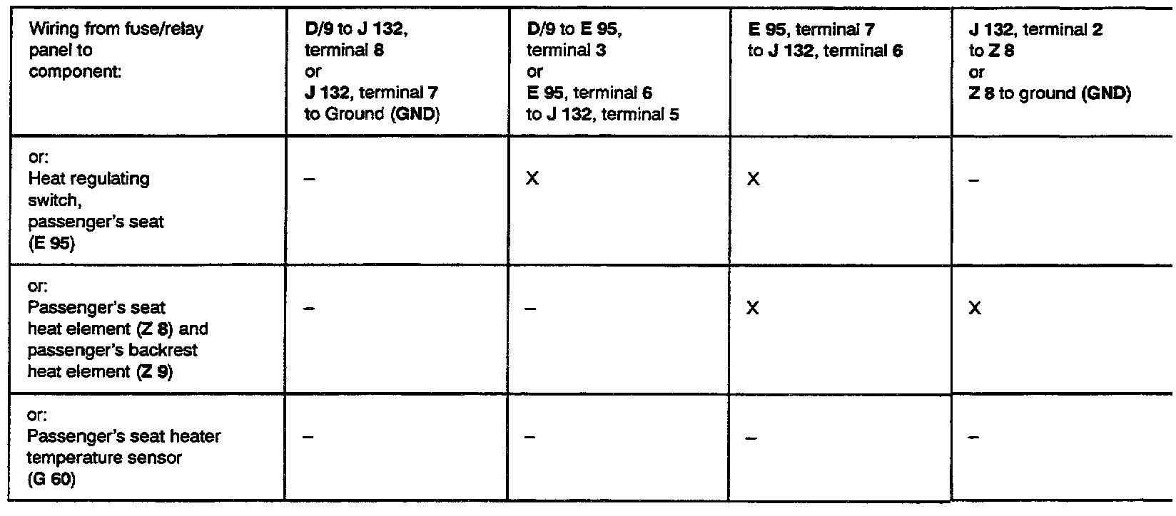 After repairing malfunction, check seat heater for proper operation.