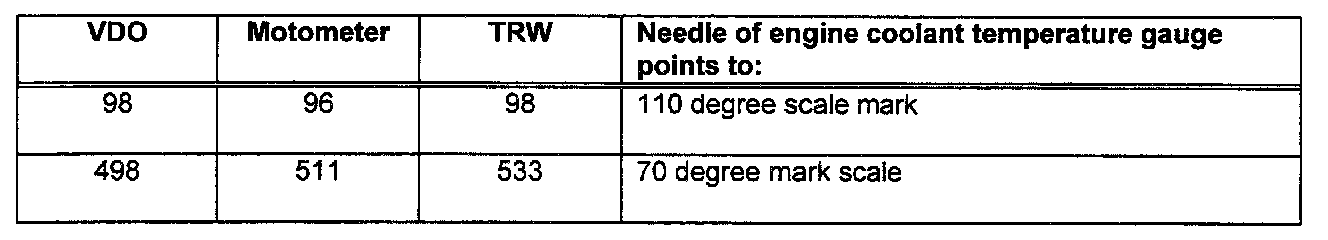 - The Engine coolant temperature gauge (G3) must be checked with different setting values depending on the manufacturer of the gauge