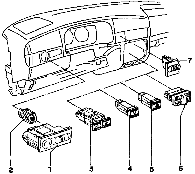 1- Light switch -E1- For parking lights, headlights and fog lights.