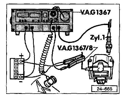 - Connect VAG 1367 engine tester with VAG 1367/8 inductive pick-up.