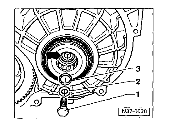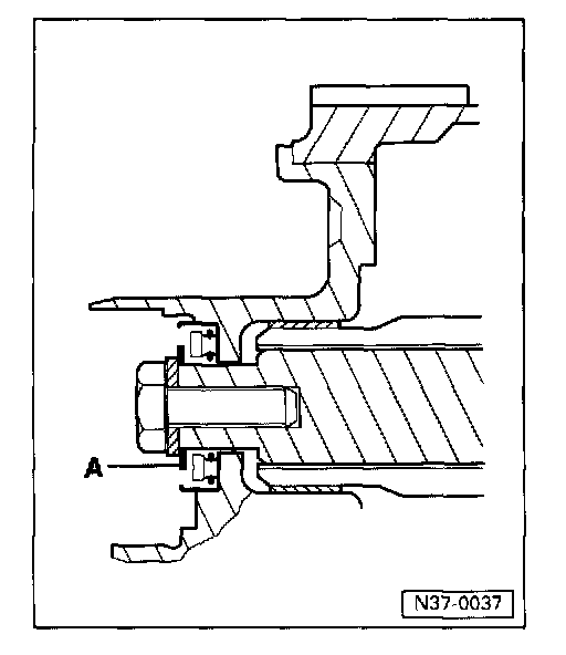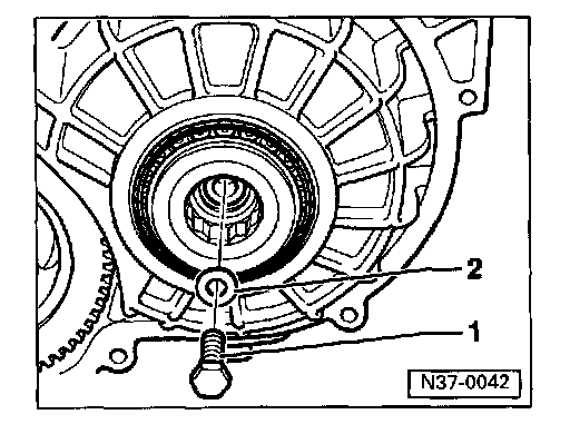 - Install small input shaft bolt -1- with washer -2-, but without shim.