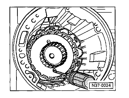 If the planet carrier has been adjusted with reverse gear brake -B1 and free wheel removed, then install reverse gear brake -B1- before installing planet carrier