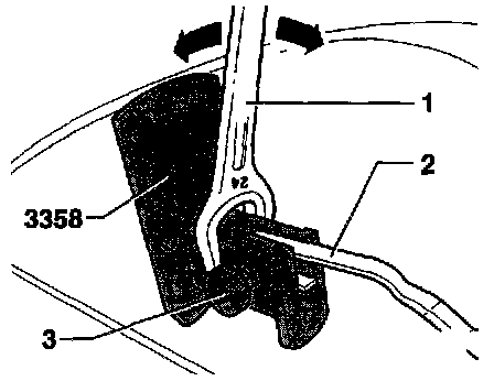 - Loosen retaining screw -3- and remove wiper arm adjusting tool 3358 from wiper arm -2- then reinstall and recheck.