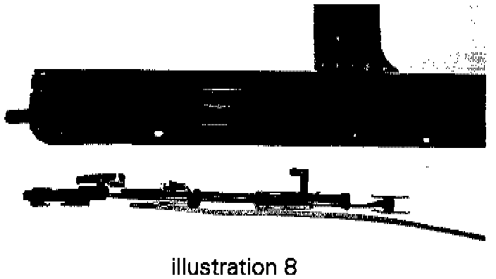 REPLACING REAR GUIDE:Tip mounting pin out of wire loop at front (arrow 1) and slide guide backward off tip of wire at rear.