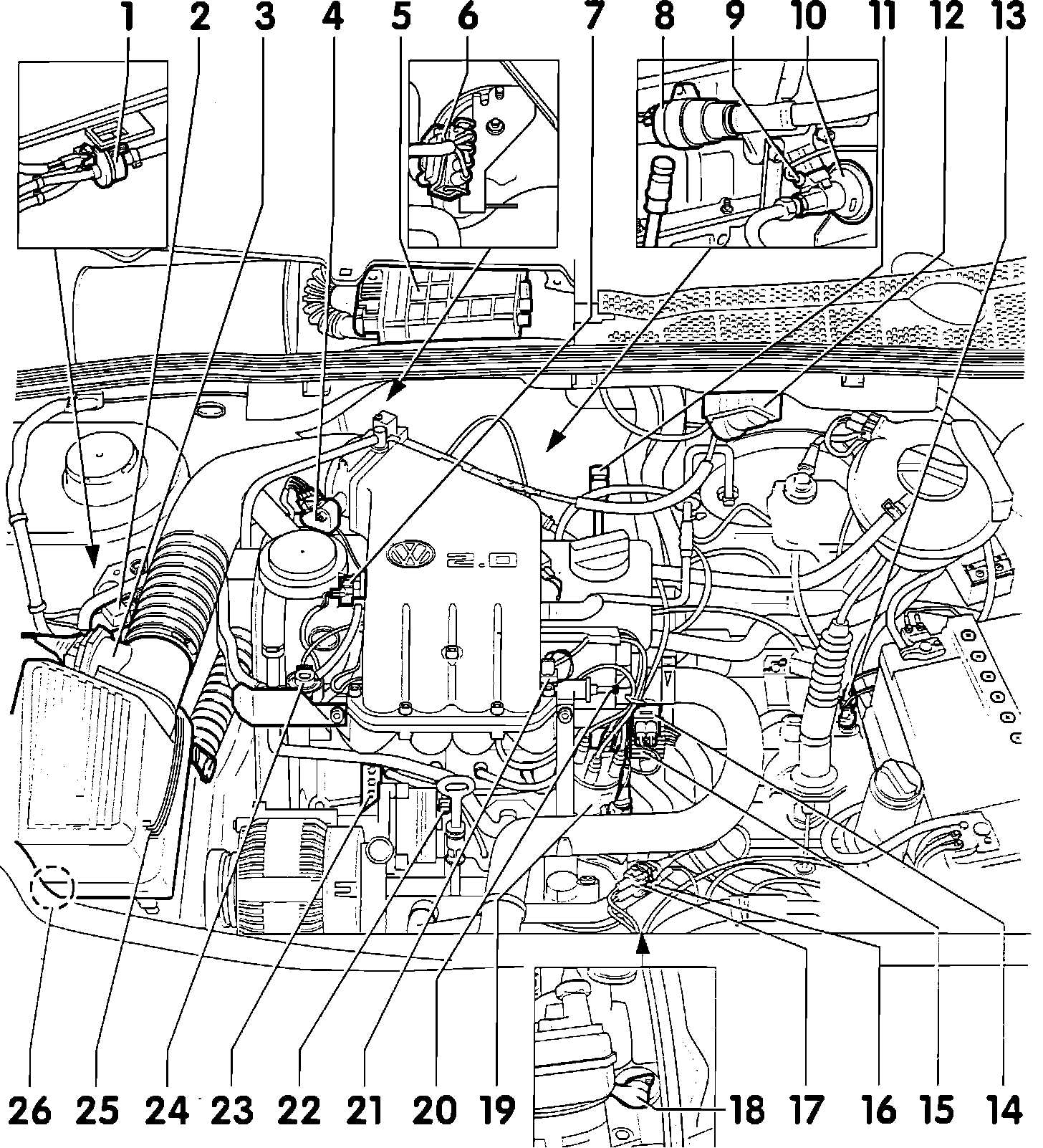 2. All electrical consumers switched "OFF" (radiator cooling fan must not be running during checking).