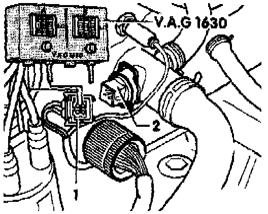- Disconnect connector -1- from -2- Engine Coolant Temperature (ECT) Sensor (G62).