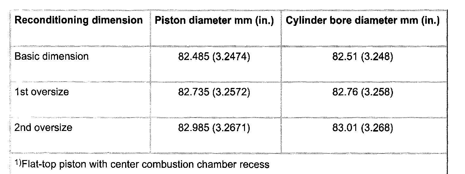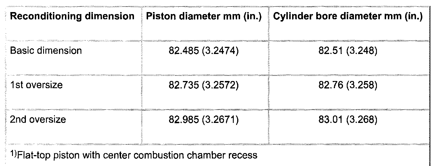 2) Dimension stamped on piston crown. Add 0.015 mm (0.0006 in.) for actual diameter including phosphate layer.