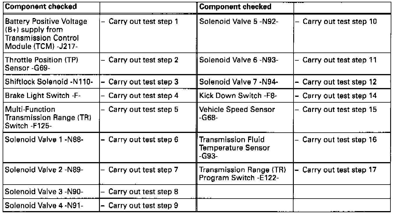 ELECTRICAL TEST TABLES (PINOUT CHARTS)