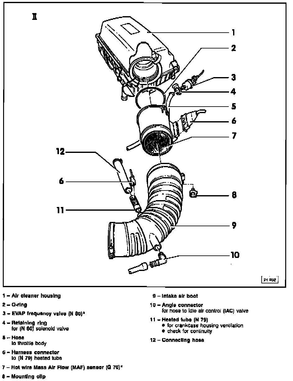 CAUTION: Ignition MUST be switched OFF before disconnecting the MAF (Mass Air Flow) sensor. After switching OFF ignition allow 20 seconds for the hot wire in the MAF (Mass Air Flow) sensor to heat up and self clean.