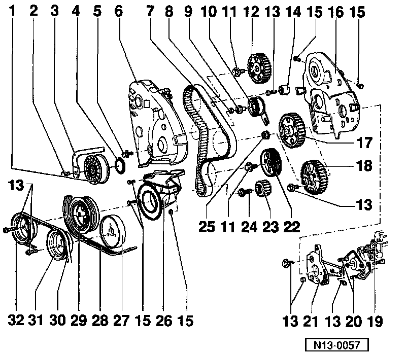 Semi-automatic tension roller (engine codes 1Z, AHU) shown