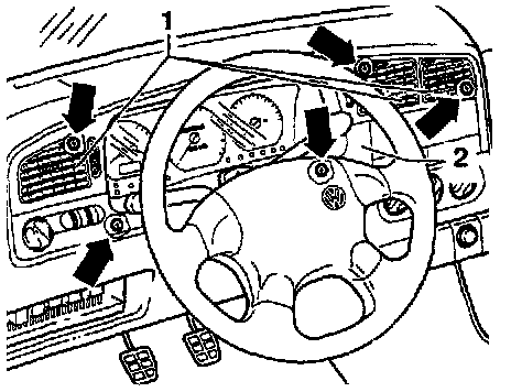- Remove 5 screws -arrows- and remove instrument cluster trim.