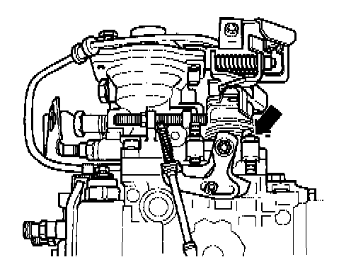 - - Release lock nut on stop screw (arrow) and with CSA cable fully pulled out set idle speed boost to 1050 rpm by turning stop screw.