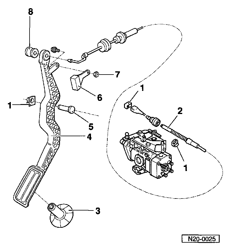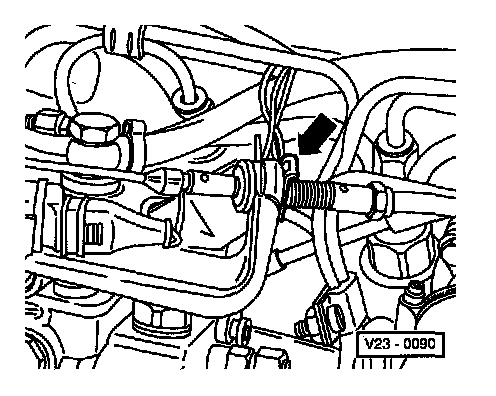 With the accelerator cable in the Wide Open Throttle position, adjust cable by positioning the securing clip-arrow-in the outer cable grooves, so the injection pump lever just contacts the stop and is not subjected to any stresses.