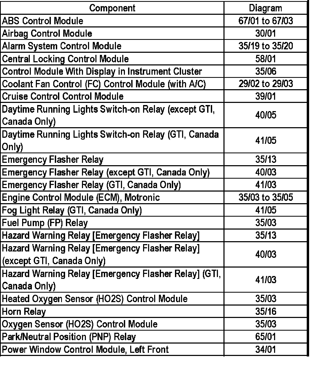 Master Diagram Index