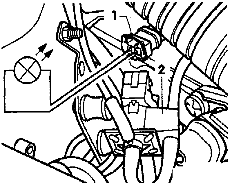 - Disconnect connector -1- from valve -2- and connect VAG 1527 LED tester to the disconnected connector with adapter cable from VW 1594.