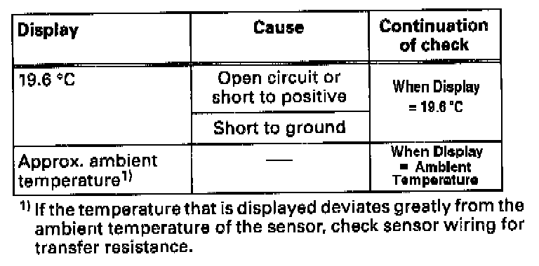 Continuation of check when display = ambient temperature