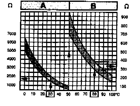 A - resistance values for the temperature range 0 ° - 50 °C (32 ° - 122 °F)