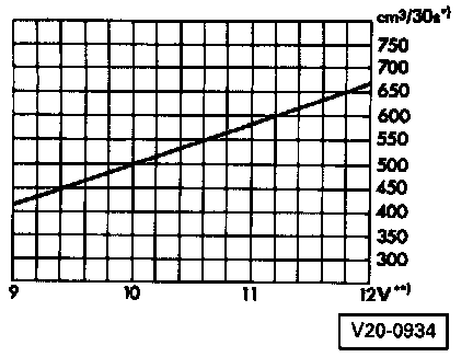 During the test, 12.5 volts is measured at the battery. As the voltage at the pump is approx. 2 volts less than the battery voltage then this will equate to a minimum delivery rate of 530 cubic cm/30 seconds.