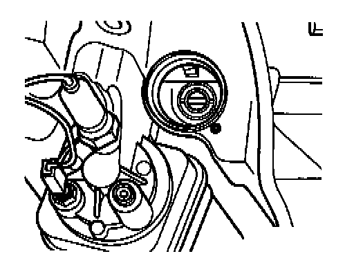 - Turn tensioner with pin wrench (e.g. Matra V159) in direction of arrow to adjust toothed drive belt tension.