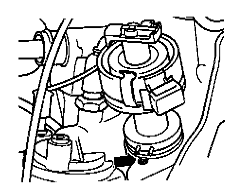 - Pins on distributor must point toward mounting bolt threaded hole (arrow).