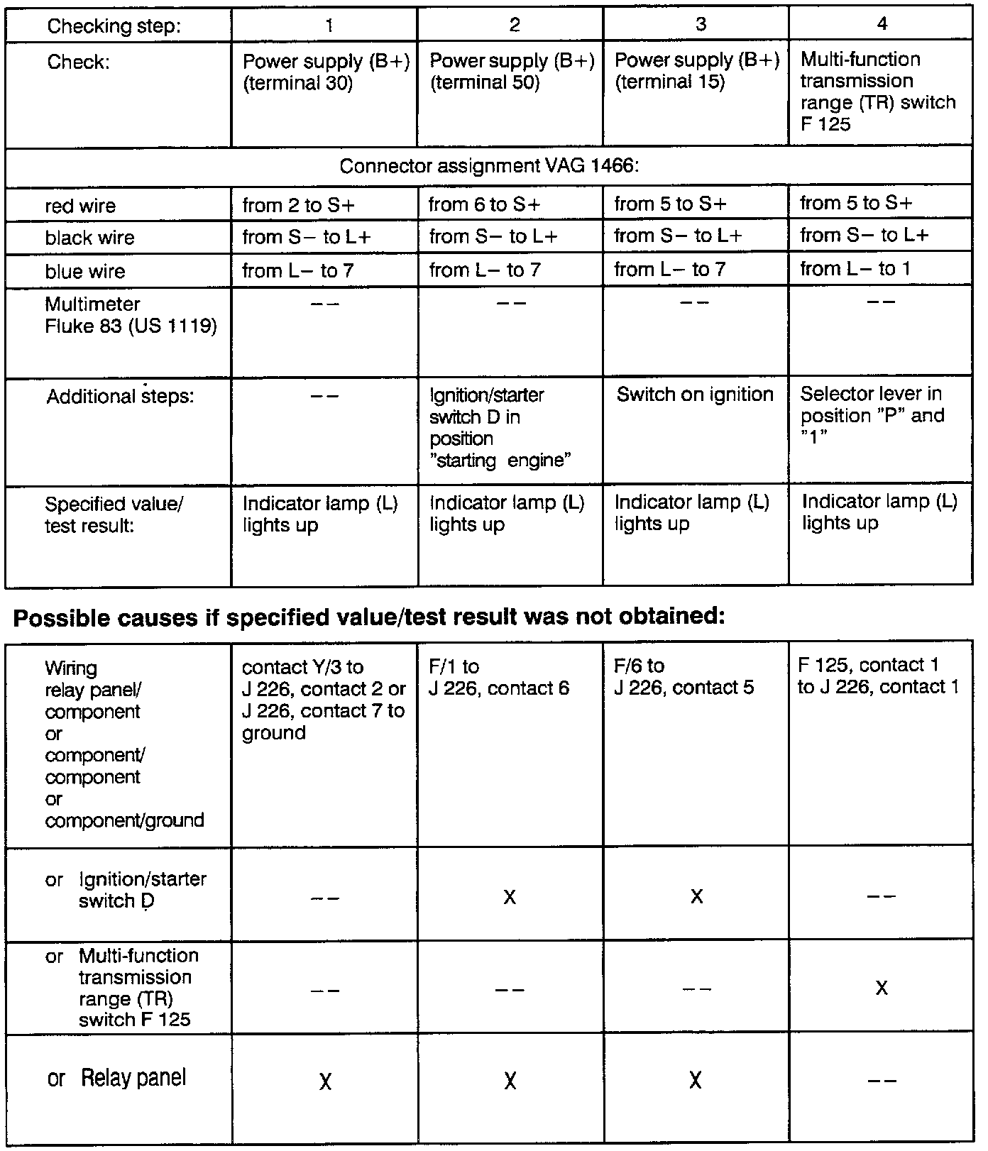 Use test system VAG 1466 for troubleshooting.Test Condition: