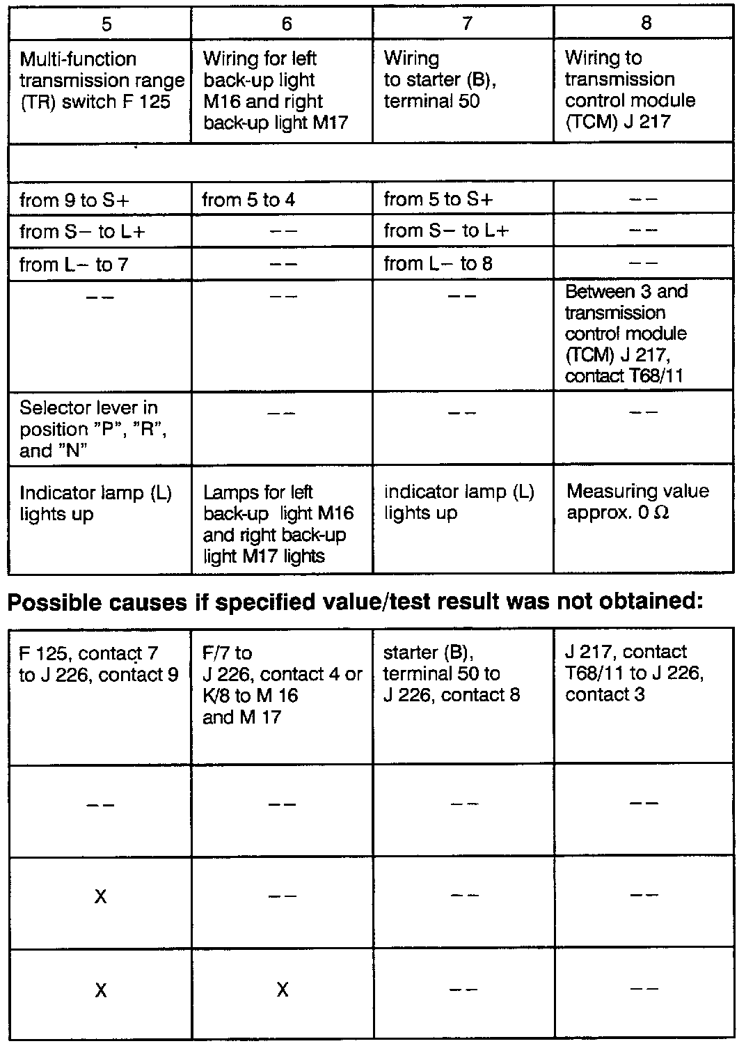 - If specified value/test result is not obtained, use table for troubleshooting and repair.