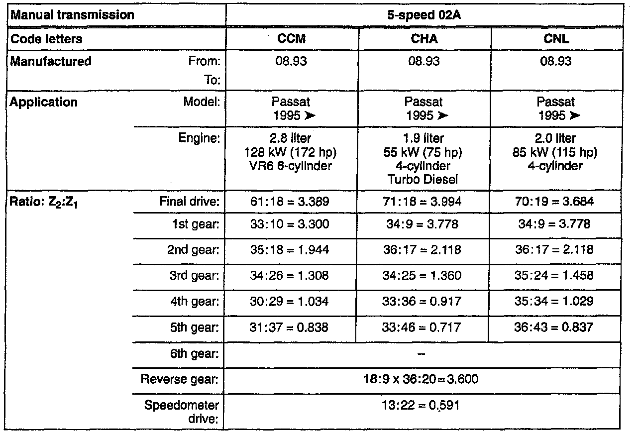Manual Transmission/Transaxle: Application and ID
