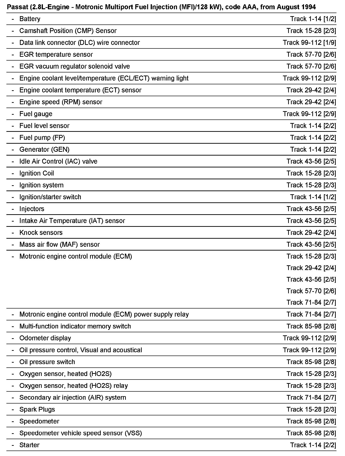 Passat Sedan (3A2) V6-2.8L (AAA)