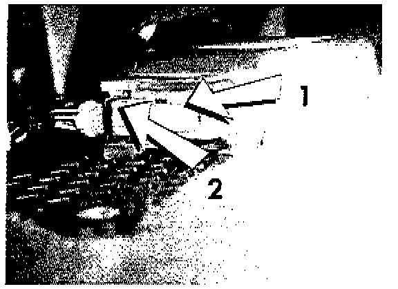 The connector plug for the airbag ECM (arrow 1) has a locking safety catch to ensure proper engagement and retention (arrow 2). Previously, if this safety catch was accidentally broken during removal or installation, the entire airbag harness had to be replaced.
