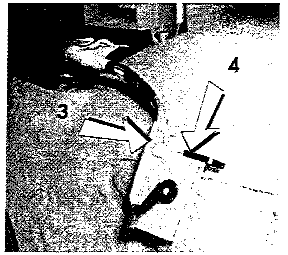 Cut the tie-strap (arrow 3) and slide off the plastic end cap (arrow 4).