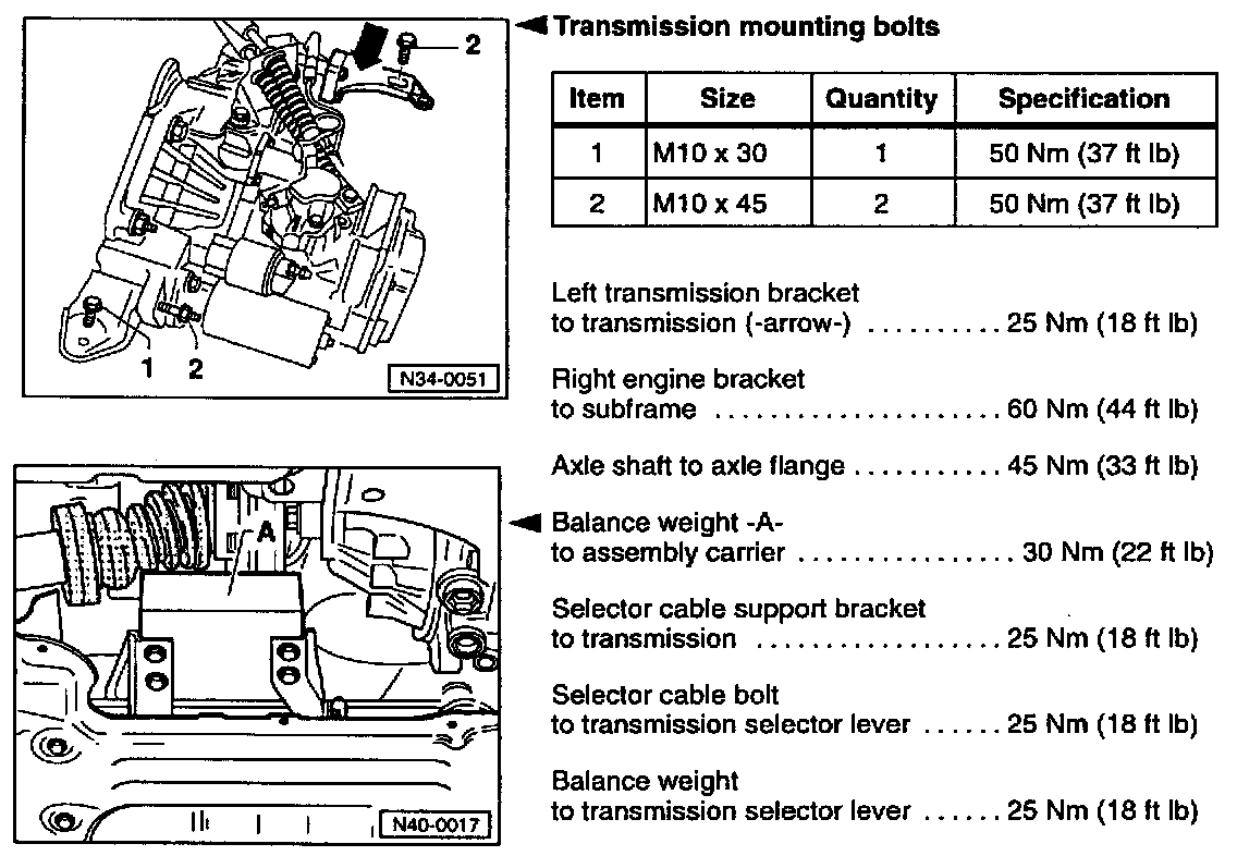 Transmission Torque Specifications