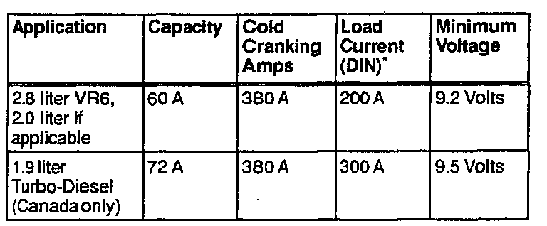 NOTE: The load current and the minimum voltage varies, depending upon the capacity of the battery and should be taken from the sticker on the heavy discharge tester, or taken from the following chart: