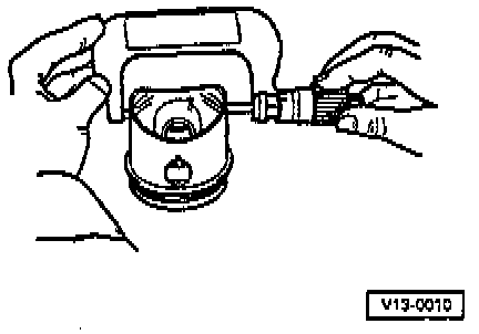 - Measure pistons approx. 6 mm (0.2364 inch) from the lower edge of skirt, at 90° to the piston pin axis.