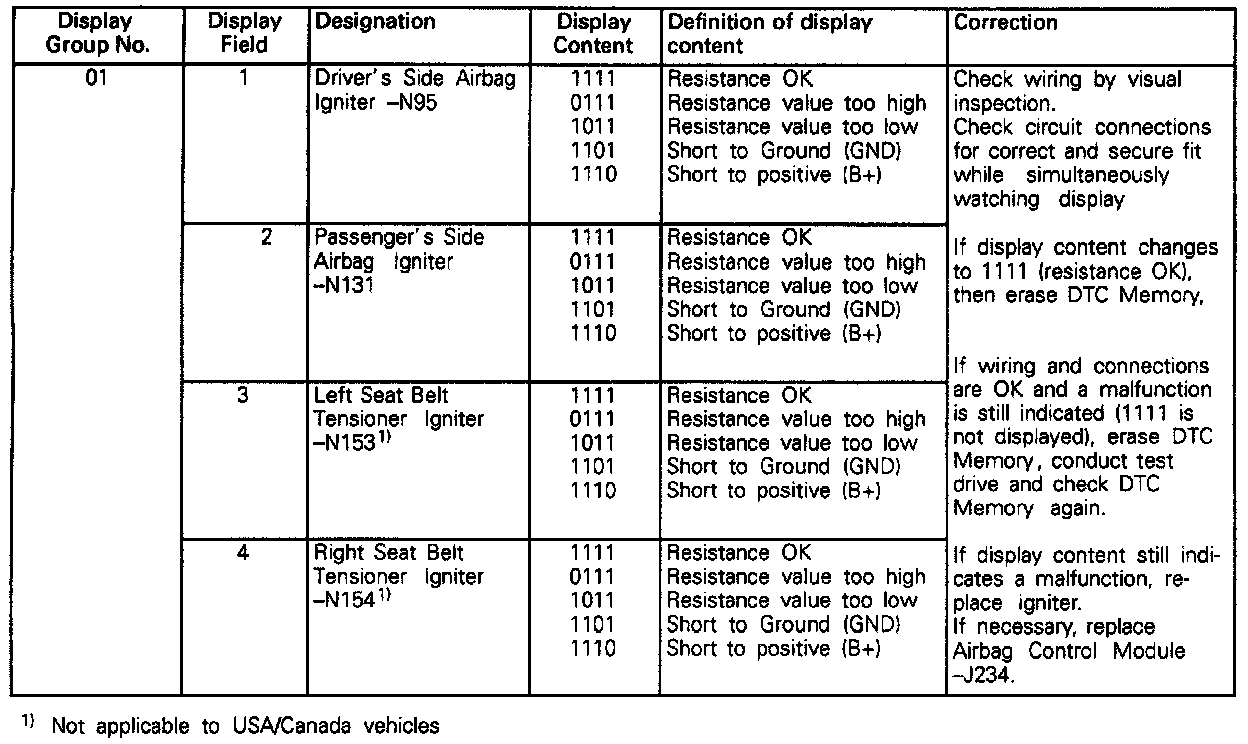 Overview:Three measuring value block display groups each have four display fields that can be read. For troubleshooting, however, only the data in display group 1 and in display field 1 of display group 2 are used.