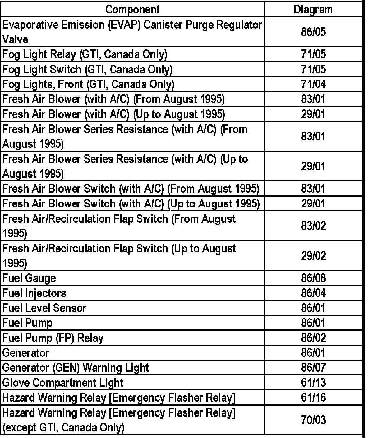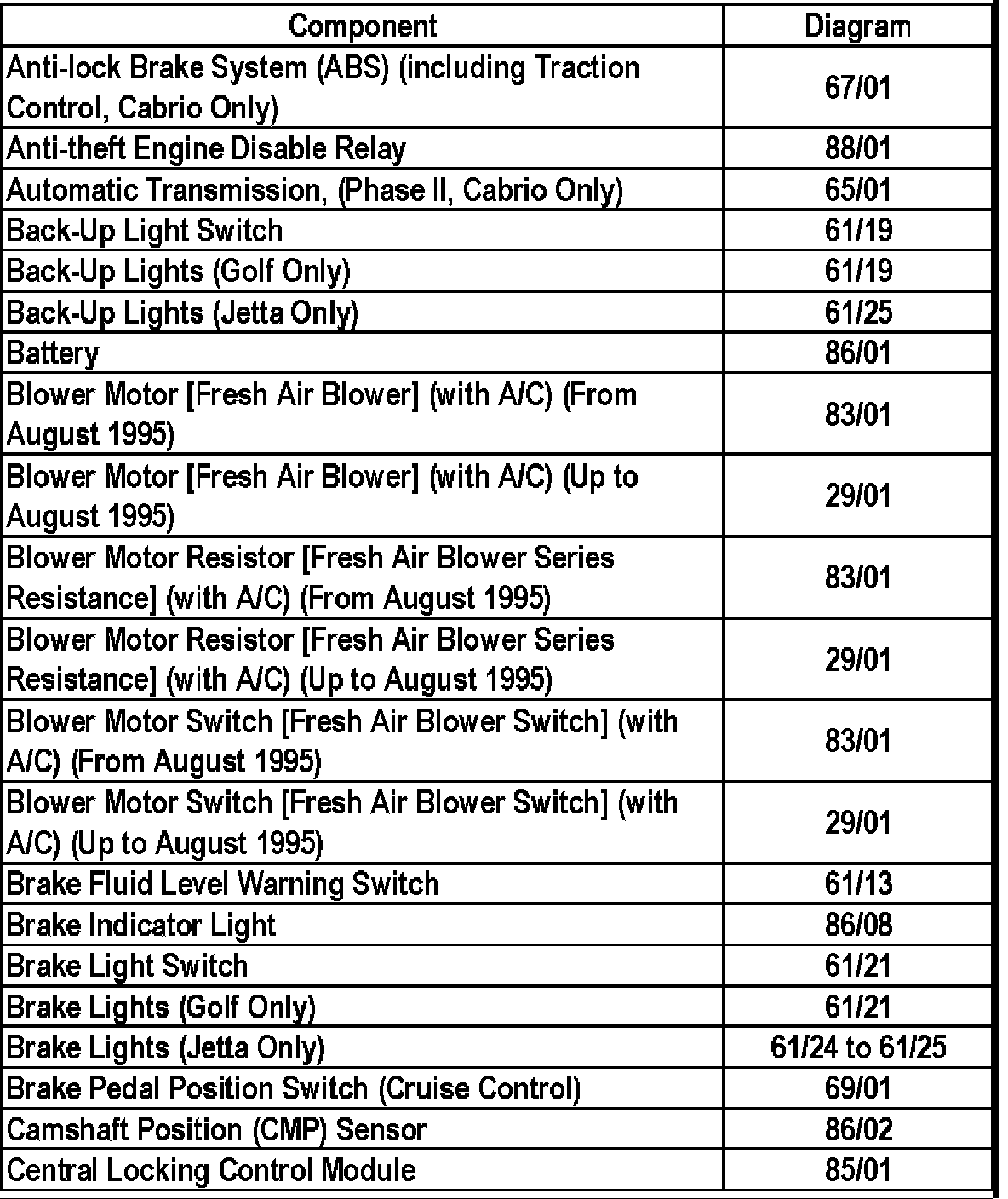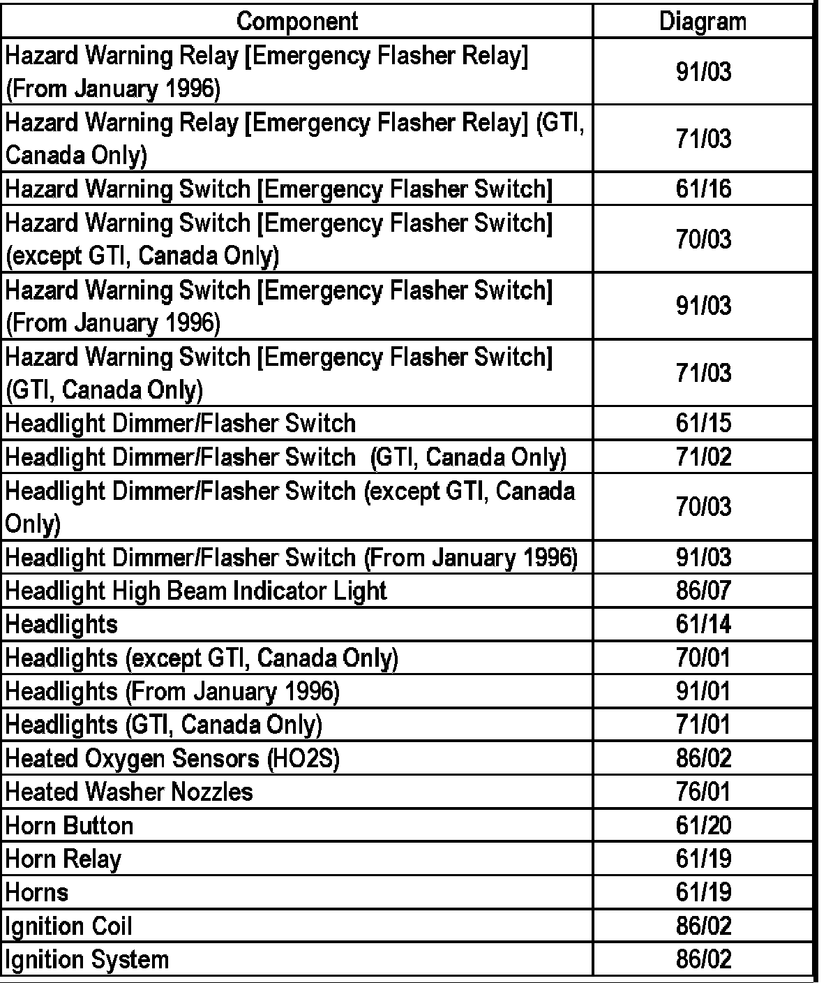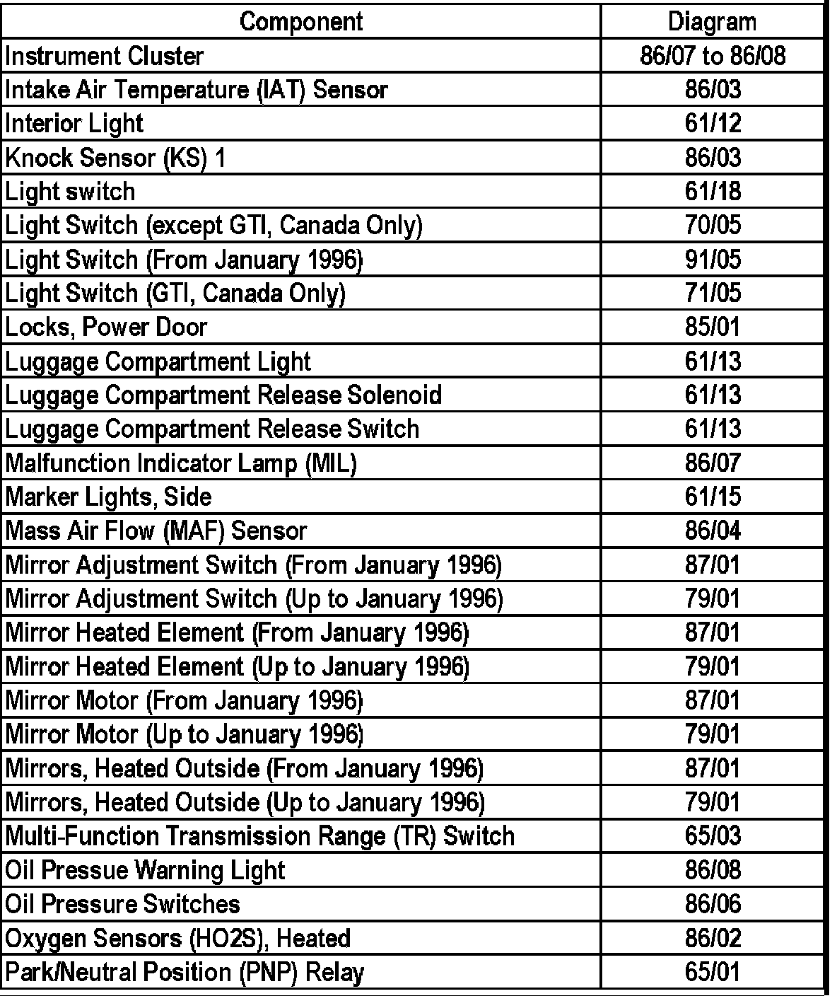 Master Diagram Index