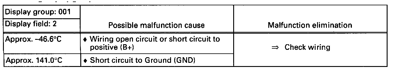 - If irregular engine running occurs in certain temperature ranges and the temperature value does not increase without interruption, the temperature signal is temporarily interrupted and the sensor must be replaced.