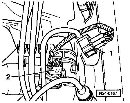 - Disconnect 4-pin connector -1- from ECT sensor -G62- -2-.