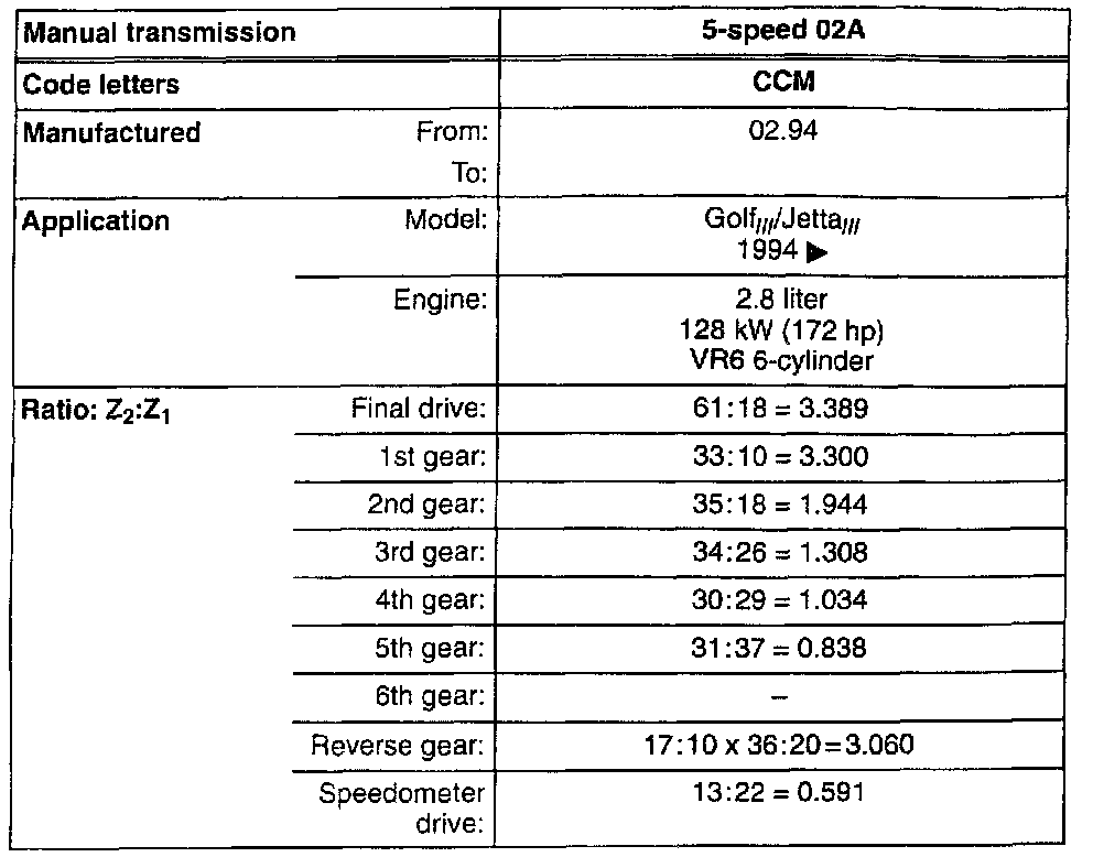 Manual Transmission/Transaxle: Application and ID