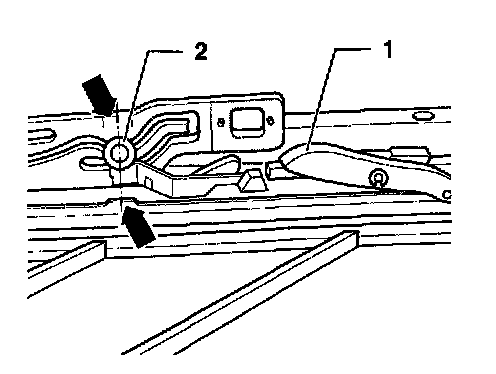 - Slide rear guide pins 2 from front to rear only as far as marks or notches (arrows).