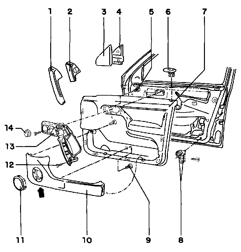 Front door trim, removing and installingExploded View: