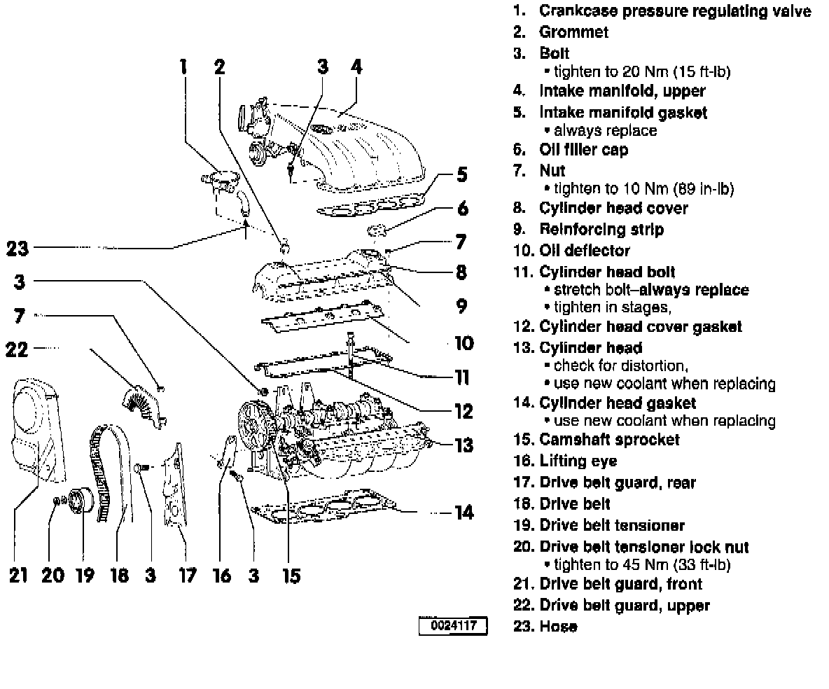 Upper intake manifold to lower manifold: 20 Nm (15 ft-lb).