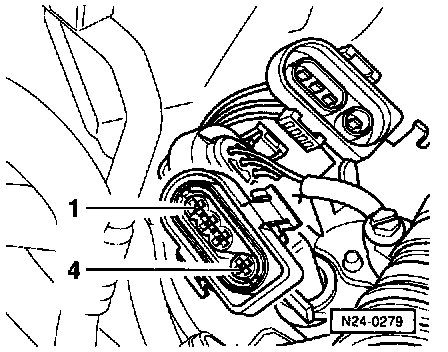 - Separate 4-pin connector -1- (black) to HO2S -G39- (before three way catalytic converter).