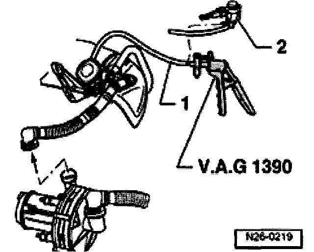 - Connect hand vacuum pump (V.A.G 1390) to vacuum hose -1- to combination valve