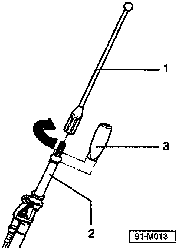 - Turn antenna -1- counterclockwise (arrow) to disconnect from threaded base -2-.