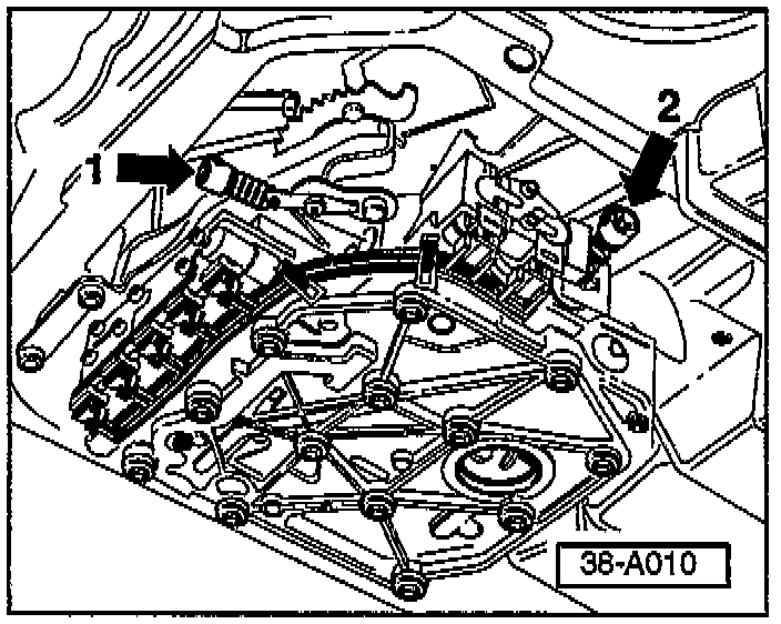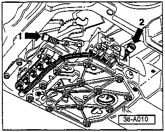 - Remove valve body plug (turn counterclockwise to remove) for limit selector (arrow -1-) and install white plug from repair kit.