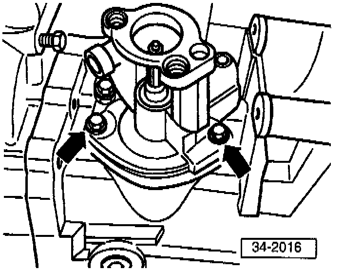 - Remove selector shaft housing attachment bolts -arrows- (tap housing lightly with brass or plastic mallet to loosen).