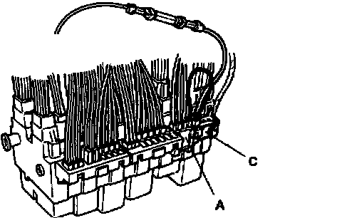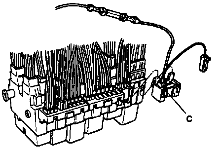 ^ Reinstall fuse box; ensure that clips engage in retainer recesses and resistor wire is routed properly and cannot rattle