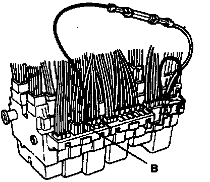 ^ Insert BLACK connector (-B-) from new resistor wire, part number 3A0 971 284A, into any open position of BLACK junction box