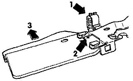 7. Press guard plate up toward the instrument panel (arrow 3) until it can be removed from its retainers.