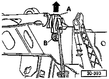 Insert screwdriver below tab -A- and press off toward instrument panel (in direction of arrow).